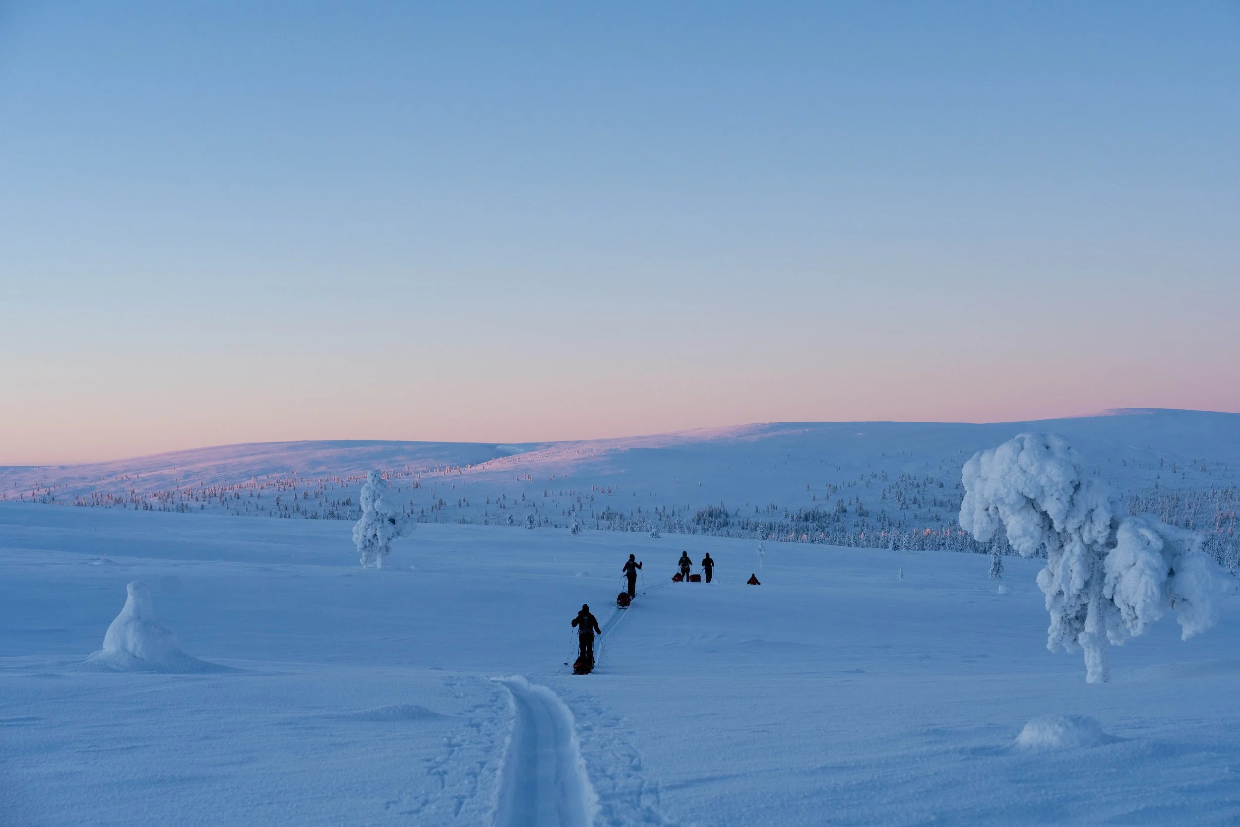 Expect frozen rivers, endless birch forests, open fells stretching to the horizon, and the deep quiet that only exists in the Arctic winter.