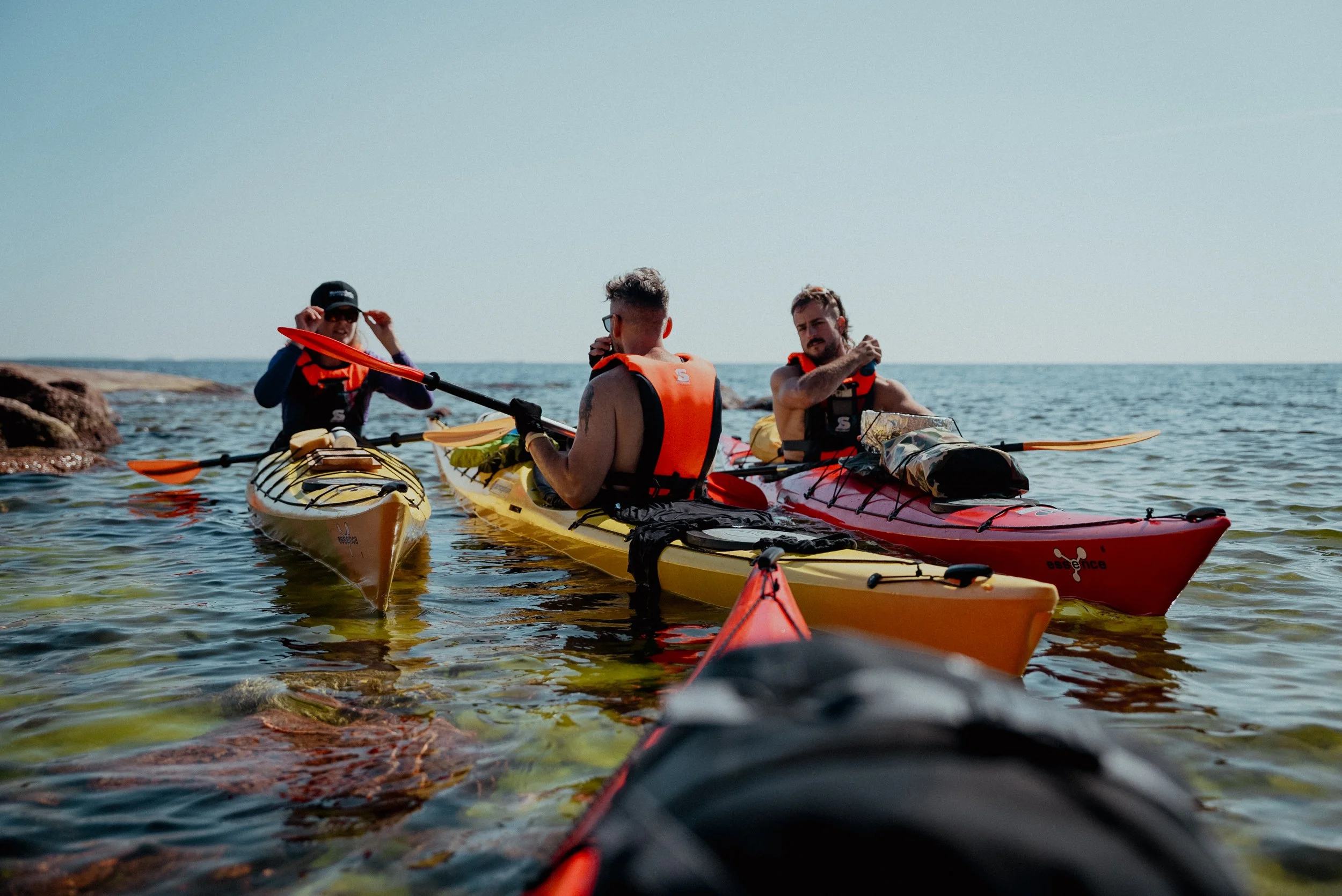 Each day we paddle between islands, navigating through sheltered channels and open stretches of water, carrying everything we need for the week.